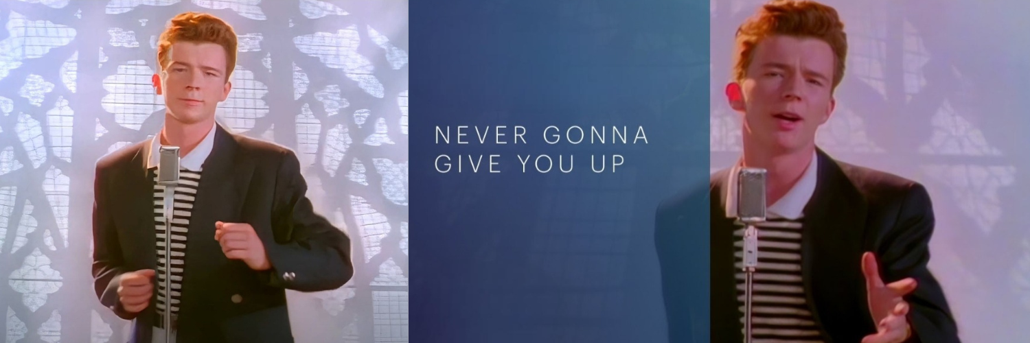 Never gonna give you up Never gonna let you down Never gonna run around and desert you Never gonna make you cry Never gonna say goodbye Never gonna tell a lie, and hurt you